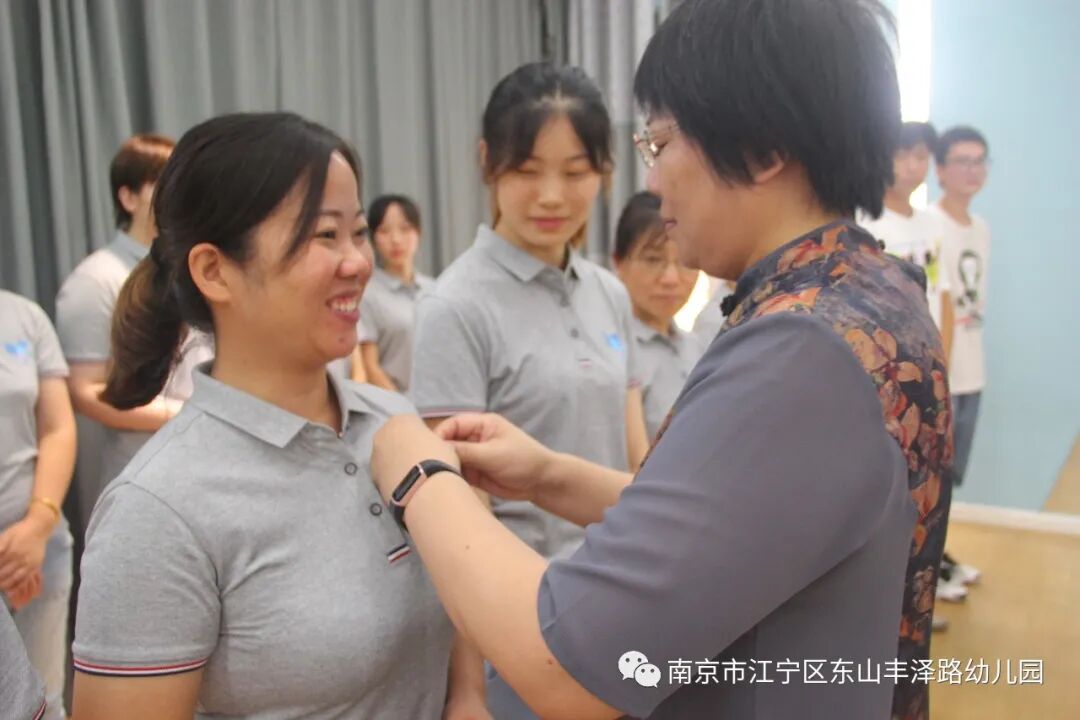 8月30日上午九点,幼儿园召开了新学期开学工作会议,全体教师以昂扬的精神面貌、饱满的工作热情齐聚幼儿园,喜迎新学期以及新老师的到来在此次会议上新老师们各显风采,获得了大家的一致好评,园长为他们带上了属于丰泽路幼儿园的徽章,希望他们在未来的日子里继续努力,共创佳绩。